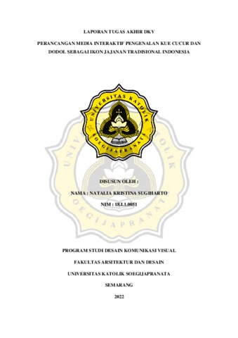 Sugiharto, Natalia Kristina (2022) PERANCANGAN MEDIA INTERAKTIF PENGENALAN KUE CUCUR DAN DODOL SEBAGAI IKON JAJANAN TRADISIONAL INDONESIA. Other thesis, Unika Soegijapranata Semarang.