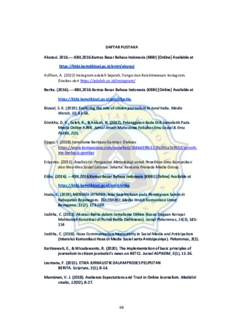 Perkembangan teknologi yang semakin canggih saat ini berdampak pada perkembangan media massa. Saat ini hampir semua aktivitas menggunakan internet, salah satunya aktivitas jurnalistik. Berkembangnya dunia jurnalistik memuncuncul istilah baru yaitu citizen journalism. Genre baru dalam menyampaikan informasi kepada masyarakat yang masih menjadi pro kontra kehadirannya. Berbagai platform digital membuat setiap orang berkesempatan untuk bisa seolah menjadi wartawan yang memberikan informasi untuk dikomsumsi oleh publik. Seperti media sosial Instragam yang banyak dimanfaatkan sebagai penyebaran informasi dengan karakteristiknya yang dimilikinya. Penelitian ini ingin melihat kekauratan konten berita yang ada di Instagram @kejadiansmg sepanjang bulan Maret 2022. Fokus penelitian ini mengacu pada Kode Etik Jurnalistik pasal 1, 2 dan 3 dengan pendekatan analisis isi deskriptif dengan metode kuantitatif. Data hasil penelitian didapat melalui dokumetasi dan dibantu dengan indikator penelitian berupa lembar koding yang sudah disusun oleh peneliti. Hasil penelitian menujukan yang sudah memenuhi enam indikator yang sudah dibuat peneliti bahwa keakuratan konten berita yang ada di Instagram @kejadiansmg dengan menerapkan Kode Etik Jurnalistik pasal 1, 2 dan 3 sebagian besar belum sepenuhnya dikatakan akurat dengan presentase 30%. Kata Kunci: Jurnalis Warga, Media Sosial, Kode Etik Jurnalistik