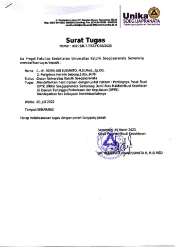 Surat pencatatan hak cipta (2022) Pentingnya Pusat Studi DTPK UNiKA Soegijapranta Semarang Demi Atas Maldistribusi Kesehatan Di Daerah Tertinggal, Perbatasan Dan Kepulauan (DTPK). EC00202252346.