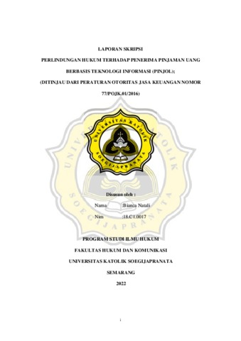 NATALI, BIANCA (2022) PERLINDUNGAN HUKUM TERHADAP PENERIMA PINJAMAN UANG BERBASIS TEKNOLOGI INFORMASI (PINJOL); (DITINJAU DARI PERATURAN OTORITAS JASA KEUANGAN NOMOR 77/POJK.01/2016). S1 thesis, Universitas Katholik Soegijapranata Semarang.