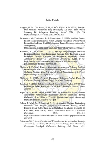 Penelitian ini bertujuan untuk mengetahui persepsi wisatawan terhadap pengelolaan 4A kepariwisataan pada obyek wisata Guci di Tegal. Sampel dalam penelitian ini 100 orang dengan usia18 hingga 50 tahun dan pernah mengunjungi Wisata Guci Tegal. Persepsi wisatawan berdasarkan attraction, accessibilities, amenities dan ancillary. termasuk ke dalam kategori baik dimana wisata Guci Tegal memiliki keunikan tersendiri bagi para pengunjungnya dibandingkan lain.