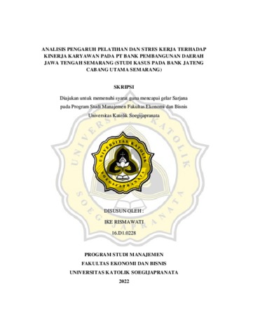 RISMAWATI, IKE (2022) ANALISIS PENGARUH PELATIHAN DAN STRES KERJA TERHADAP KINERJA KARYAWAN PADA PT BANK PEMBANGUNAN DAERAH JAWA TENGAH SEMARANG (STUDI KASUS PADA BANK JATENG CABANG UTAMA SEMARANG). Other thesis, Universitas Katholik Soegijapranata Semarang.