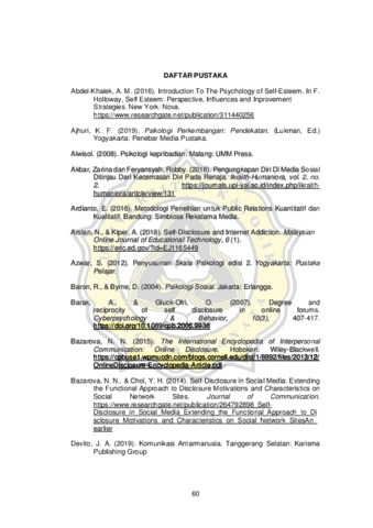 APRILIA, IVANA NOREEN (2022) HUBUNGAN HARGA DIRI DENGAN PENGUNGKAPAN DIRI DI MEDIA SOSIAL WHATSAPP PADA MAHASISWA FAKULTAS PSIKOLOGI UNIVERSITAS KATOLIK SOEGIJAPRANATA. Other thesis, Universitas Katholik Soegijapranata Semarang.