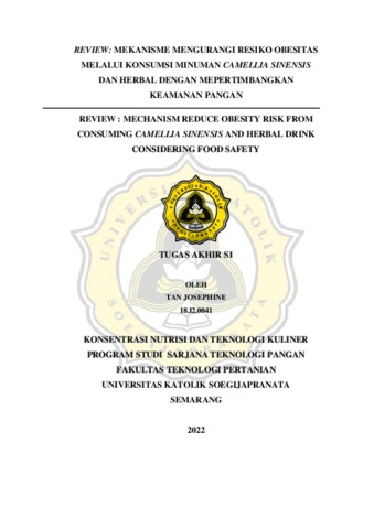 JOSEPHINE, TAN (2022) REVIEW: MEKANISME MENGURANGI RESIKO OBESITAS MELALUI KONSUMSI MINUMAN CAMELLIA SINENSIS DAN HERBAL DENGAN MEPERTIMBANGKAN KEAMANAN PANGAN REVIEW : MECHANISM REDUCE OBESITY RISK FROM CONSUMING CAMELLIA SINENSIS AND HERBAL DRINK CONSIDERING FOOD SAFETY. Other thesis, Universitas Katolik Soegijapranata Semarang.