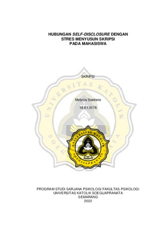 SOETISNO, MELYNIA (2022) HUBUNGAN SELF-DISCLOSURE DENGAN STRES MENYUSUN SKRIPSI PADA MAHASISWA. S1 thesis, Universitas Katholik Soegijapranata Semarang.