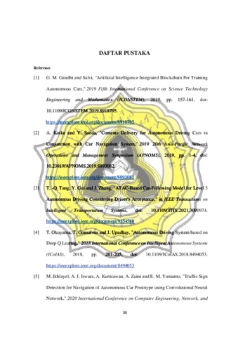 Dewantara, Martinus Hendra (2022) ANALISIS PERFORMA MEKANIK AUTONOMOUS CAR DENGAN METODE REGION OF INTEREST MENGGUNAKAN RASPBERRY PI 4 DAN ARDUINO NANO. Other thesis, Universitas Katholik Soegijapranata Semarang.