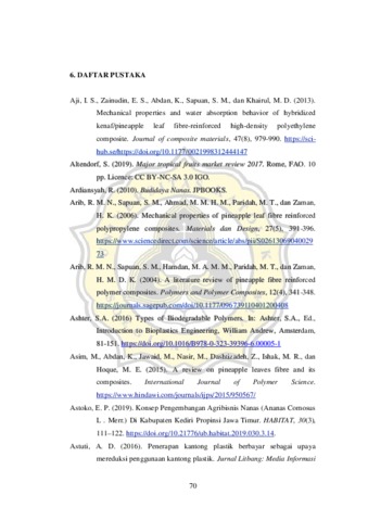 URIPTO, FILIA APRILIA (2022) LIMBAH DAUN NANAS DAN POTENSI PENGOLAHANNYA SEBAGAI KEMASAN BIOBASED ATAU BIODEGRADABLE PINEAPPLE LEAF WASTE ITS POTENTIAL AS BIOBASED OR BIODEGRADABLE PACKAGING MATERIAL. S1 thesis, Universitas Katolik Soegijapranata Semarang.