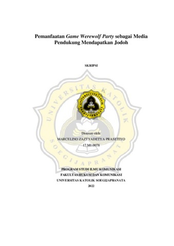 PRASETIYO, MARCELINO ZAZTYADETYA (2022) PEMANFAATAN GAME WEREWOLF PARTY SEBAGAI MEDIA PENDUKUNG MENDAPATKAN JODOH. S1 thesis, Unika Soegijapranata Semarang.