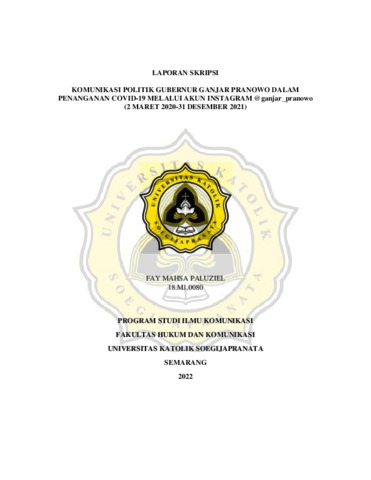 PALUZIEL, FAY MAHSA (2022) KOMUNIKASI POLITIK GUBERNUR GANJAR PRANOWO DALAM PENANGANAN COVID-19 MELALUI AKUN INSTAGRAM @ganjar_pranowo (2 MARET 2020-31 DESEMBER 2021). S1 thesis, Unika Soegijapranata Semarang.