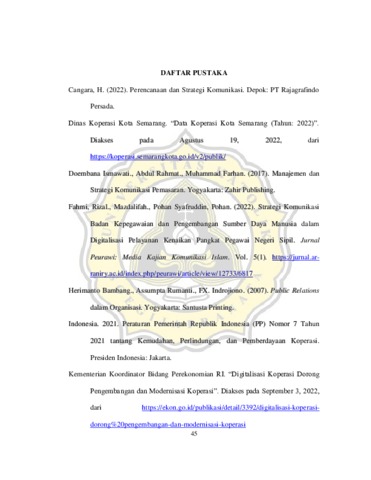 NISA`, ZAHRA MIR`ATUN (2022) STRATEGI KOMUNIKASI DALAM MELAKUKAN SOSIALISASI DIGITALISASI DINAS KOPERASI KOTA SEMARANG. S1 thesis, Unika Soegijapranata Semarang.