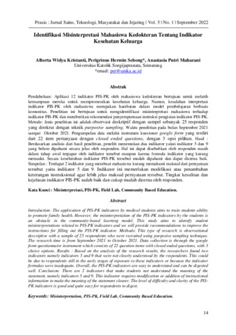 KRISTANTI, ALBERTA WIDYA and sebong, perigrinus hermin Identifikasi Misinterpretasi Mahasiswa Kedokteran Tentang Indikator Kesehatan Keluarga. PRAXIS. ISSN 2622-9137