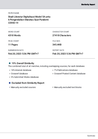 CHRISTANTI, JESSICA and Dewi Pramesuari, Florentina and Aryo Wibowo, Daniel and Clement Lie, Ezra Studi Literatur Digitalisasi Model 5A untuk Pengendalian ObesitasSaat Pandemi COVID-19. Studi Literatur Digitalisasi Model 5A untuk Pengendalian Obesitas Saat Pandemi COVID-19. ISSN 2622-9137