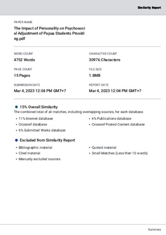 Widyorini, Endang Hasil Turnitin The Impact of Personality on Psychosocial Adjustment of Papua Students Prosiding. Unika Soegidjapranata. (Submitted)