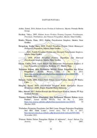 Sengketa dapat terjadi dalam kehidupan masyarakat dan tidak selalu dapat diselesaikan atau diterima oleh para pihak dalam kurun waktu yang cepat. Contoh sengketa yang dapat terjadi dalam kehidupan masyarakat adalah wanprestasi atau kelalaian seseorang dalam perjanjian yang penyelesaiannya terkadang tidak dapat diselesaikan melalui proses non litigasi hingga para pihak menyelesaikan sengketa tersebut melalui pengadilan atau proses litigasi. Upaya untuk mencapai perdamaian yang sangat diperlukan dalam proses peradilan adalah mediasi. Mediasi dapat dilaksanakan di pengadilan maupun di luar pengadilan, akan tetapi dapat terjadi hal-hal yang dapat menghambat proses mediasi. Penelitian ini dilakukan untuk mengetahui bagaimana proses upaya perdamaian serta hambatannya pada sengketa dalam Putusan Pengadilan Negeri Brebes Nomor 28/Pdt.G/2019/PN Bbs. Penelitian ini menggunakan metode pendekatan yuridis normatif. Data-data yang digunakan pada penelitian ini diperoleh dengan wawancara dan studi pustaka. Upaya perdamaian dilaksanakan dengan mediasi di pengadilan dan di luar pengadilan. Mediasi di pengadilan dilaksanakan sebanyak tiga kali namun para pihak tidak dapat mencapai kesepakatan perdamaian, mediasi gagal. Para pihak dapat mencapai kesepakatan perdamaian dengan melaksanakan mediasi di luar pengadilan dengan negosiasi. Hambatan pada mediasi di pengadilan adalah mediasi hanya dipandang formalitas belaka oleh para pihak atau mediator, mediator tidak berperan secara aktif dalam mendamaikan para pihak. Penggugat tidak pernah hadir selama mediasi dan proses persidangan serta kuasa hukum para pihak sulit menghubungi klien masing-masing. Hambatan mediasi di luar pengadilan adalah kuasa hukum para pihak sulit melakukan pertemuan untuk membahas isi klausula pada draf penyelesaian dan melakukan penandatanganan karena adanya perbedaan domisili serta adanya penyebaran virus covid-19 yang baru masuk ke Indonesia. Walaupun terdapat berbagai hambatan yang terjadi selama proses mediasi di pengadilan maupun luar pengadilan, pada akhirnya para pihak tetap dapat mencapai kesepakatan perdamaian yang dituangkan dalam akta perdamaian