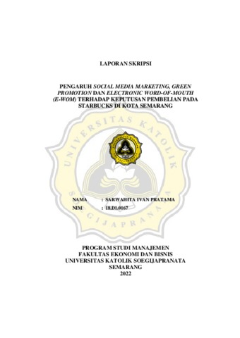PRATAMA, SARWAHITA IVAN (2023) PENGARUH SOCIAL MEDIA MARKETING, GREEN PROMOTION DAN ELECTRONIC WORD-OF-MOUTH (E-WOM) TERHADAP KEPUTUSAN PEMBELIAN PADA STARBUCKS DI KOTA SEMARANG. Other thesis, Universitas Katholik Soegijapranata Semarang.