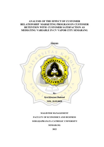 SHAHZAD, SYED KHURAM (2023) ANALYSIS OF THE EFFECT OF CUSTOMER RELATIONSHIP MARKETING PROGRAM ON CUSTOMER RETENTION WITH CUSTOMER SATISFACTION AS MEDIATING VARIABLE IN CV VAPOR CITY SEMARANG. Masters thesis, Universitas Katholik Soegijapranata Semarang.