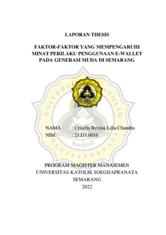 CHANDRA, CRISELLA REVINA LILIA (2023) FAKTOR-FAKTOR YANG MEMPENGARUHI MINAT PERILAKU PENGGUNAAN E-WALLET PADA GENERASI MUDA DI SEMARANG. Masters thesis, Universitas Katholik Soegijapranata Semarang.