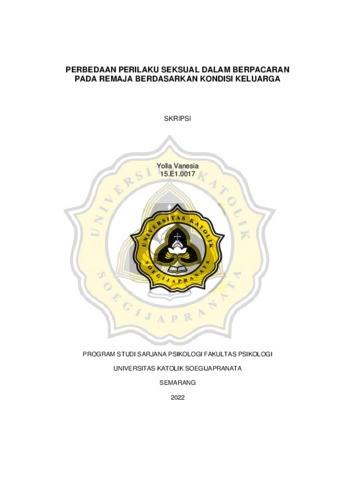 VANESIA, YOLLA (2023) PERBEDAAN PERILAKU SEKSUAL DALAM BERPACARAN PADA REMAJA BERDASARKAN KONDISI KELUARGA. Other thesis, Universitas Katholik Soegijapranata Semarang.