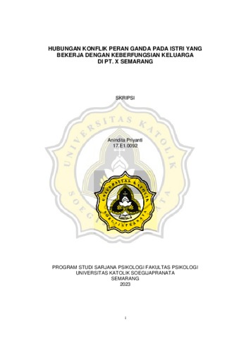 PRIYANTI, ANINDITA (2023) HUBUNGAN KONFLIK PERAN GANDA PADA ISTRI YANG BEKERJA DENGAN KEBERFUNGSIAN KELUARGA DI PT. X SEMARANG. Other thesis, Universitas Katholik Soegijapranata Semarang.