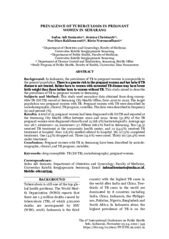 Adi Susianto, Indra and CHRISTANTI, JESSICA and DIAN RAKHMAWAT, NUR and NURMANDHANI, RIRIN PREVALENCE OF TUBERCULOSIS IN PREGNANT WOMEN IN SEMARANG. PREVALENCE OF TUBERCULOSIS IN PREGNANT WOMEN IN SEMARANG.