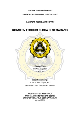NUGRAHENI, DINI ARIFA (2023) KONSERVATORIUM FLORA DI SEMARANG. Other thesis, Universitas Katholik Soegijapranata Semarang.