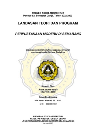 WIJAYA, ALAN KUSUMA (2023) PERPUSTAKAAN MODERN DI SEMARANG. Other thesis, Universitas Katholik Soegijapranata Semarang.