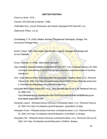 Dalam Proyek Akhir Arsitektur dengan judul ‘Galeri Seni di Kota Pati’ dengan hal ini Seni sudah ada pada jaman dulu yang dimana dalam bentuk gambar – gambar dan sebagainya. Dan tanpa disadari kita sebagai manusia yang berada pada jaman ini wajib menjaga, merawat, dan melestarikan seni, sehingga tidak ada terjadinya kepunahan bahkan sampai terlupakan. Dalam hal ini pada kota pati yang memiliki macam – macam kesenian dari lukisan, tari, dan budaya yang ada di kota pati ini. Dengan begitu kesenian yang berada di kota pati ini harus di lestarikan, dijaga, dan dirawat dengan baik. Sehingga cara memamerkan, edukasi, dan penjualannya berjalan dengan baik. Dan semua itu perlunya sebuah bangunan yaitu bangunan galeri seni. Dalam hal ini kesenian merupakan sesusatu kegiatan yang memerlukan ide – ide atau karya. Beberapa orang ada yang ahli dalam ilmu seni, yang dapat memberikan pengajarannya atau ilmunya yang bisa pelajari, sehingga dapat menyediakan tempat untuk mengajar. Kemudian setelah pengajaran terdapat hasil – hasil karya yang dapat di pajang di area tersebut. Kemudian landasan teori ini mengunakan tentang pengertian mengenai apa itu seni, galeri seni, dan apa aja yang ada disana. Sehingga teori tersebut dapat mengetahui fungsi dari bangunan tersebut dan juga penerapan nya dalam arsitektur nusantara yang dimana memiliki peran penting, dikarenakan memiliki kesenian sendiri dalam bangunan tersebut dengan begitu penerapannya dalam bentuk bangunan. Dalam pendekatan arsitektur nusantara ini dilihat dari sekitar kita bahwa kita sebgai warga indonesia yang memiliki 2 iklim sehingga perlunya ada pendekatan arsitektur nusantara ini. Kemudian dalam menggunakan beberapa studi preseden , dapat mengetahui sistem – sistem seperti jenis ruang, persyaratan bentuk ruang, kegunaan, serta macam - macam kegunaan ruang.