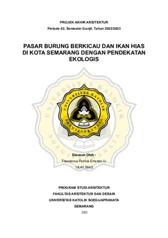 ERRANDO U, THEODORUS PATRICK (2023) PASAR BURUNG BERKICAU DAN IKAN HIAS DI KOTA SEMARANG DENGAN PENDEKATAN EKOLOGIS. Other thesis, Universitas Katholik Soegijapranata Semarang.