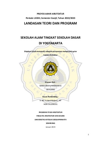 PRIMARHAYU, MARIA KRISTA (2023) SEKOLAH ALAM TINGKAT SEKOLAH DASAR DI YOGYAKARTA. Other thesis, Universitas Katholik Soegijapranata Semarang.