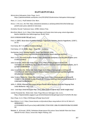 Pemerintah Negara Indonesia turut menyelenggarakan sistem pendidikan sebagai upaya mensejahterakan dan mencerdaskan kehidupan bangsa. Namun saat ini Indonesia masih mengalami angka putus sekolah serta yang paling tinggi adalah pada jenjang Sekolah Dasar (SD). Untuk menanggulangi hal tersebut maka pemerintah menetapkan Program Wajib Belajar 12 Tahun dan Provinsi Daerah Istimewa Yogyakarta (DIY) adalah provinsi yang berprestasi dalam pelaksanaan program tersebut sehingga sudah sepatutnya diapreasi melalui dukungan upaya peningkatan kualitas pendidikan agar dapat tetap mempertahankan prestasinya serta semakin meningkatkan kualitas pendidikan yang telah ada. Melalui data yang ada diketahui pada Provinsi DIY perlu dilakukan peningkatan kualitas pendidikan pada jenjang SD dengan penerapan sistem sekolah berbasis alam yang mengajarkan nilai lokalitas dan pendalaman karakter, sekaligus mejadi wujud dari penerapan visi dan misi Pemerintah Provinsi DIY pada bidang pendidikan. Rencananya perancangan SD berbasis alam akan dilakukan di Kabupaten Kulon Progo tepatnya di Perkotaan Wates. Hal ini dikarenakan Kabupaten Kulon Progo belum memiliki sekolah alam dan taraf pendidikan masyarakat masih rendah. Sebagian besar penduduk berprofesi sebagai petani, sehingga dengan adanya sekolah alam tingkat SD diharapkan sesuai dengan sosial budaya penduduk setempat dan mampu menarik minat untuk bersekolah. Biaya pendidikan yang relatif mahal tidak menjadi hambatan bagi masyarakat karena secara ekonomi mereka tergolong mampu. Selain itu Perkotaan Wates berfungsi sebagai pusat pendidikan dengan potensi alam yang dapat digunakan untuk menunjang aktivitas sekolah alam. Penerapan pendekatan arsitektur ekologis dirasa mampu mendukung kegiatan belajar mengajar di sekolah alam tingkat SD terlebih membantu menyediakan kebutuhan fasilitas sekolah alam tingkat SD yang ditawarkan kepada masyarakat.