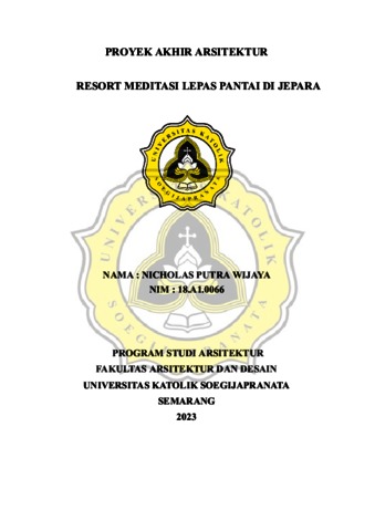 WIJAYA, NICHOLAS PUTRA (2023) RESORT MEDITASI LEPAS PANTAI DI JEPARA. Other thesis, Universitas Katholik Soegijapranata Semarang.