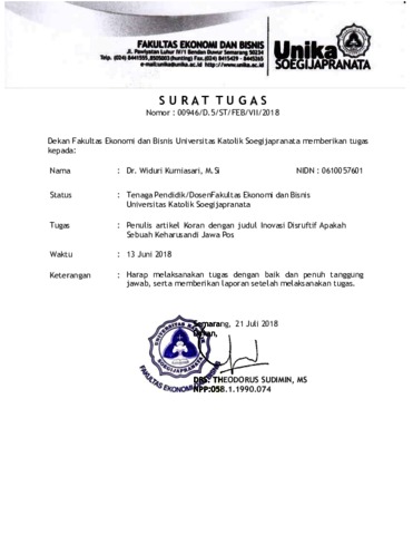 Kurniasari, Widuri (2018) Inovasi Disruftif Apakah Sebuah Keharusan. Jawa Pos : Radar Semarang.