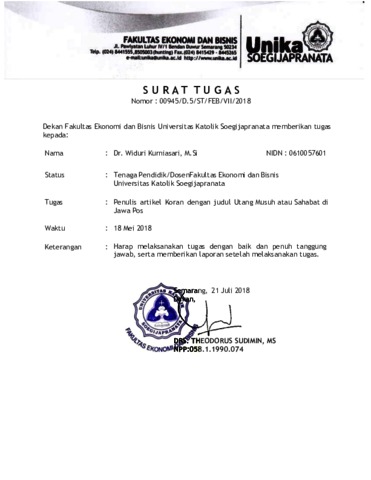 Kurniasari, Widuri (2018) Utang Musuh atau Sahabat. Jawa Pos : Radar Semarang.