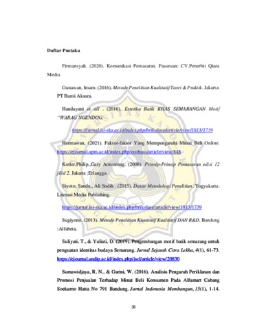PRAMUDITA, ADONIA BELLA (2023) IDENTIFIKASI PENGGUNAAN PROMOSI PENJUALAN BATIK SEMARANGAN KAMPUNG BATIK REJOMULYO. Other thesis, Universitas Katolik Soegijapranata Semarang.