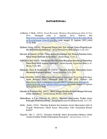 SINAGA, GUSTIAR BRIGITHA (2023) TRADISI SESAJI REWANDA SEBAGAI IDENTITAS KULTURAL MASYARAKAT KAMPUNG TALUN KACANG KELURAHAN KANDRI KOTA SEMARANG. Other thesis, Universitas Katolik Soegijapranata Semarang.