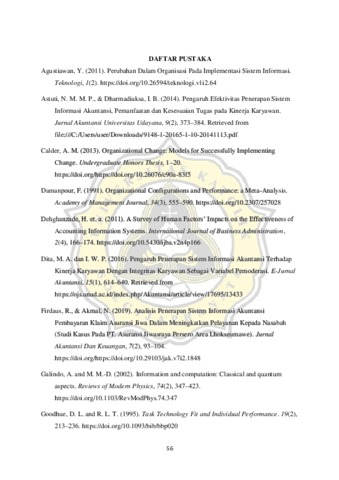 Pesatnya perkembangan teknologi menuntut organisasi untuk terus berinovasi agar dapat bersaing. Universitas X menjadi universitas yang mulai menyiapkan diri terhadap gelombang perubahan, salah satunya dengan menerapkan sistem dalam proses transaksi keuangan. Penelitian ini bertujuan untuk menganalisis penerapan teknologi informasi dalam sistem keuangan di Universitas X. Penelitian ini merupakan penelitian deskriptif kualitatif dimana responden dalam penelitian ini adalah yang terlibat langsung dalam proses transisi dari pekerjan manual hingga menggunakan system diantaranya adalah WR II, Kepala Bagian keuangan, Staff Bagian Gaji Bagian Keuangan, Staff Bagian Pembukuan Bagian Keuangan dan Staff Sistem di Bagian SDM. Penelitian ini akan menjabarkan proses implementasi sistem yang digunakan pada bagian kasir dan bagian gaji, serta melihat bagaimana bentuk dukungan pimpinan dan juga proses adaptasi karyawan pada saat penerapan sistem baru. Tantangan dan peluang apa saja yang dihadapi dalam proses penerapan inovasi teknologi informasi. Hasil dari penelitian ini menyimpulkan bahwa pada bagian kasir maupun gaji belum mampu mencapai tahapan refreezing dalam perubahan sistem karena perubahan tersebut tidak mampu membentuk norma baru. Diperlukan konsistensi dan kesiapan data yang matang dalam mempersiapkan perubahan hingga tercipta keseimbangan baru. Temuan dalam penelitian ini diharapkan dapat digunakan untuk membantu universitas dalam menghadapi perubahan teknologi, terutama dalam proses penerapan sistem baru sehingga dapat diterima oleh para penggunanya dan sistem benar-benar berhasil diterapkan pada sebuah organisasi.