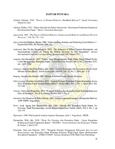 Pajak merupakan salah satu aspek penting dalam kehidupan bernegara. Sistem pungutan pajak di Indonesia menerapkan sistem self assessment dan berlaku sejak tahun 1983. Akan tetapi, fenomena atas penerapan sistem ini menjadi isu yang menarik. Pemerintah memberikan kebebasan kepada setiap wajib pajak untuk melaksanakan kewajiban perpajakannya sendiri, disamping itu sebagian besar wajib pajak merasa kesulitan dalam melaksanakan kewajiban perpajakannya. Hal ini mendorong munculnya suatu motivasi untuk menggunakan jasa konsultan pajak. Kemunculan konsultan pajak diharapkan dapat menyelesaikan permasalahan di bidang perpajakan. Penelitian ini bersifat eksploratif, yaitu menggali faktor yang menjadi pertimbangan wajib pajak dalam menggunakan jasa konsultan pajak. Obyek dalam penelitian ini adalah wajib pajak orang pribadi yang berada di Kota Semarang. Data diperoleh dengan menggunakan metode wawancara. Penelitian ini menggunakan dengan pendekatan TRA dan TPB, berdasarkan teori ini perilaku diasumsikan ditentukan oleh motivasi. Motivasi tersebut dapat dibagi menjadi dua dimensi yaitu dimensi personal (dalam) dan dimensi sosial (luar). Hasil dari penelitian ini menemukan 8 faktor yang menjadi pertimbangan wajib pajak orang pribadi dalam menggunakan jasa konsultan pajak, yaitu ekonomi, operasional usaha, otoritas, pemahaman pajak, pendampingan, pengembangan usaha, penilaian subjektif, dan relasi.