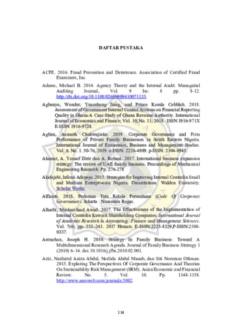 Tujuan penelitian ini mengkaji implementasi Good Corporate Governance (GCG) dan pelaksanaan sistem pengendalian internal perusahaan. Analisis data menggunakan metode kualitatif berlandaskan pada filsafat positivisme. Objek penelitian ini dilakukan pada perusahaan family business yang bergerak di industri manufaktur sejak tahun 1946. Teknik penentuan responden atau partisipan dengan purposive sampling, yaitu diambil dari kelompok top management (1 orang), middle management (3 orang), dan staf (5 orang). Teknik analisis data dalam penelitian ini menggunakan pendekatan studi kasus melalui wawancara. Hasil penelitian : (1). Implementasi GCG belum diterapkan penuh oleh perusahaan family business dalam best practice. Nampak dari pelaksanaan RUPS tahunan belum diselenggarakan sesuai prosedur, Dewan Komisris yang telah terbentuk berasal dari para anggota keluarga, dan Pendukung Dewan Komisaris belum dibentuk. Direksi dan pendukung Direksi belum menjalankan semua tata kelola yang baik, dan belum mempunyai standar minimal dokumen-dokumen kebijakan. (2). SPI pada perusahaan family business belum diterapkan dengan baik. Misalnya sehubungan dengan lingkungan pengendalian, belum adanya pengembangan sistem akuntabilitas, garis komando dan otorisasi masih tersentral pada direktur. Terkait dengan penaksiran risiko, perusahaan belum melakukan identifikasi dan penilaian risiko. Aktivitas pengendalian belum adanya kebijakan yang dibuat, dengan demikian belum ada mekanisme pengendalian risiko dengan baik, dan belum adanya perangkat/intrumen pengendalian. Sistem informasi dan komunikasi pada perusahaan baik internal maupun eksternal berjalan dengan baik, meskipun belum ada sistem informasi dan komunikasi secara khusus. Disisi lain, sehubungan dengan monitoring juga belum dilakukan dengan baik.