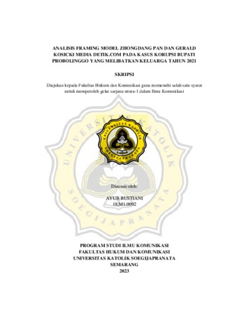 RUSTIANI, AYUB (2023) ANALISIS FRAMING MODEL ZHONGDANG PAN DAN GERALD KOSICKI MEDIA DETIK.COM PADA KASUS KORUPSI BUPATI PROBOLINGGO YANG MELIBATKAN KELUARGA TAHUN 2021. Other thesis, Universitas Katolik Soegijapranata Semarang.