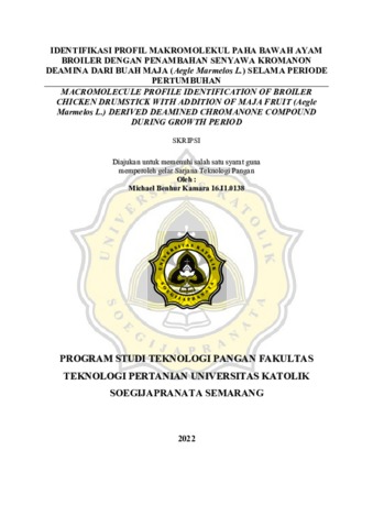 KAMARA, MICHAEL BENHUR (2023) IDENTIFIKASI PROFIL MAKROMOLEKUL PAHA BAWAH AYAM BROILER DENGAN PENAMBAHAN SENYAWA KROMANON DEAMINA DARI BUAH MAJA (Aegle Marmelos L.) SELAMA PERIODE PERTUMBUHAN. Other thesis, Universitas Katholik Soegijapranata Semarang.