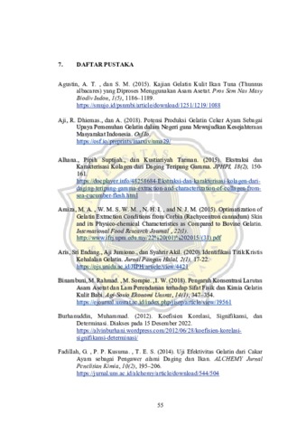 NONO, MARTHA FRANSISKA (2023) OPTIMASI PENGOLAHAN GELATIN EKSTRAK KOLAGEN CEKER AYAM DENGAN VARIASI KONSENTRASI ASAM ASETAT DAN LAMA WAKTU PERENDAMAN TERHADAP KARAKTERISTIK FISIK DAN KIMIA GELATIN. Other thesis, Universitas Katholik Soegijapranata Semarang.