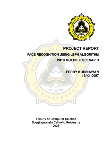 KURNIAWAN, FERRY (2023) FACE RECOGNITION USING LBPH ALGORITHM WITH MULTIPLE SCENARIO. Other thesis, Universitas Katholik Soegijapranata Semarang.