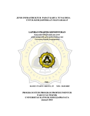 BROTO, RADIUS WAHYU (2023) JENIS INFRASTRUKTUR PADAT KARYA TUNAI DESA UNTUK KESEJAHTERAAN MASYARAKAT. Project Report. Program Studi Teknik Sipil Unika Soegijapranata Semarang. (Unpublished)