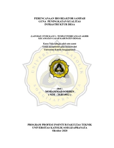 SOBIRIN, MOHAMMAD (2023) PERENCANAAN BIO REAKTOR SAMPAH GUNA PENINGKATAN KUALITAS INFRASTRUKTUR DESA. Project Report. Program Studi Teknik Sipil Unika Soegijapranata Semarang. (Unpublished)