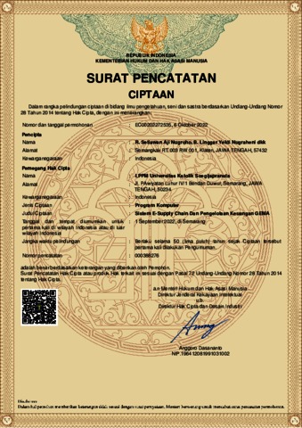 https://pdki-indonesia.dgip.go.id/detail/EC00202272535?type=copyright&keyword=EC00202272535 (2022) Sistem E-Supply Chain dan Pengelolaan Keuangan GEMA. EC00202272535.