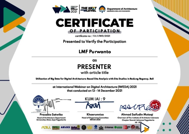 Indrawan, Stephanus Evert and Purwanto, LMF (2022) Utilization of Big Data for Digital Architecture-based Site Analysis with Site Studies in Badung Regency - Bali. Utilization of Big Data for Digital Architecture-based Site Analysis with Site Studies in Badung Regency - Bali, 671. pp. 75-78. ISSN 2352-5398