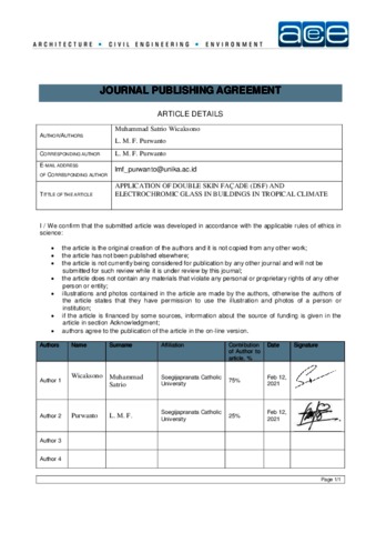 Wicaksono, Muhammad Satrio and Purwanto, LMF (2022) Application of Double Skin Facade (DSF) and Electrochromic Glass in Building in Tropical Climate. Application of Double Skin Facade (DSF) and Electrochromic Glass in Building in Tropical Climate, 15 (4). pp. 81-90. ISSN 2720-6947