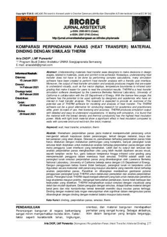 KOMPARASI PERPINDAHAN PANAS (HEAT TRANSFER) MATERIAL DINDING DENGAN SIMULASI THERM.pdf Download (673kB) | Preview |