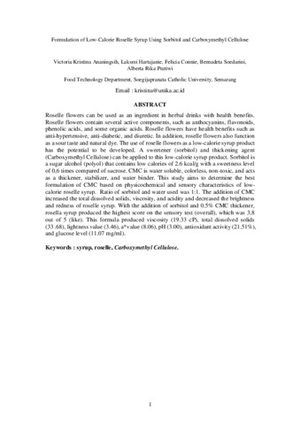 ANANINGSIH, VICTORIA KRISTINA Formulation of Low-Calorie Roselle Syrup Using Sorbitol and Carboxymethyl Cellulose. ICFSE Full Paper.