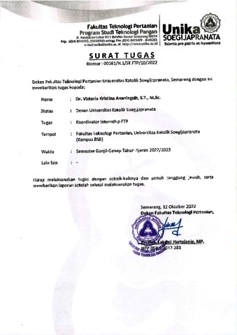ANANINGSIH, VICTORIA KRISTINA Koordinator Internship FTP. -. (Unpublished)
